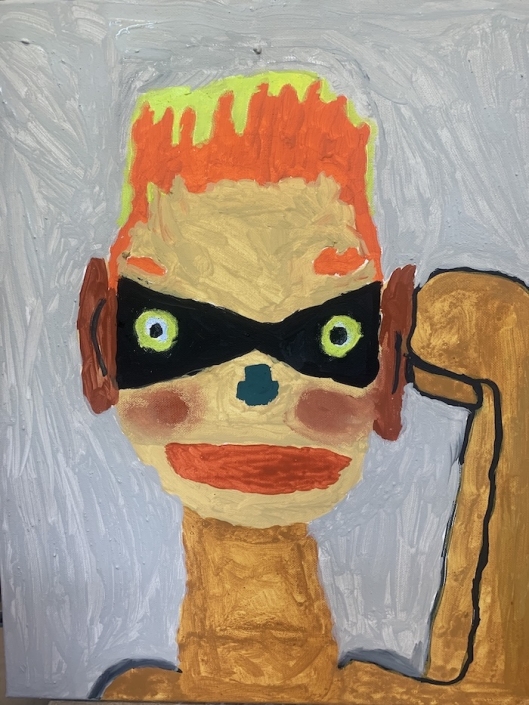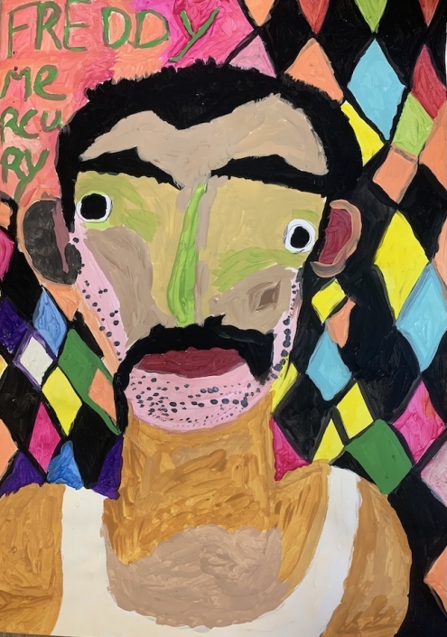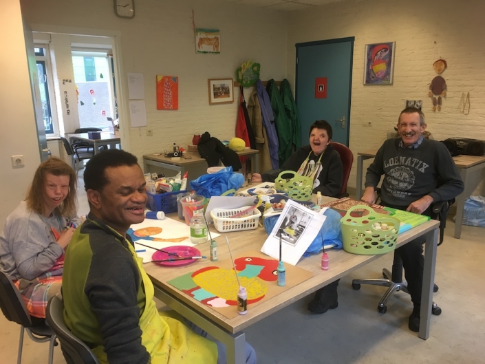 In de dagbesteding ‘De Elzen’ werkte ik jarenlang samen met kunstenaar Michael Boldewijn. Samen schilderden we vele supersterren, zangers en roofdieren, alle op groot formaat 50x 70. Michael heeft een voorliefde voor het schilderen van grote tanden en neushaar. Hij is fan van de Paus de XXIII , de Hulk en bami. Hij zingt “Jealous Guy’ van Brian Ferry mee met tranen in zijn ogen.